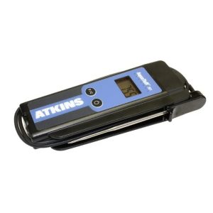 The T158 oval panel thermometer measures two temperatures at once. It is wall or desk mountable. It is F/C selectable and features a 120″ cord.