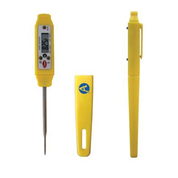 This waterproof digital thermometer is NSF listed and has automatic shut-off. Designed with anti-microbial additive to avoid bacteria growth and reduced stainless steel tip for a quick response time.