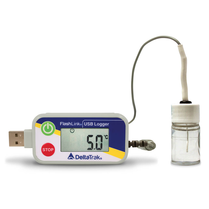 DeltaTrak-Certified vaccine Data logger connected to glycol bottle-20932