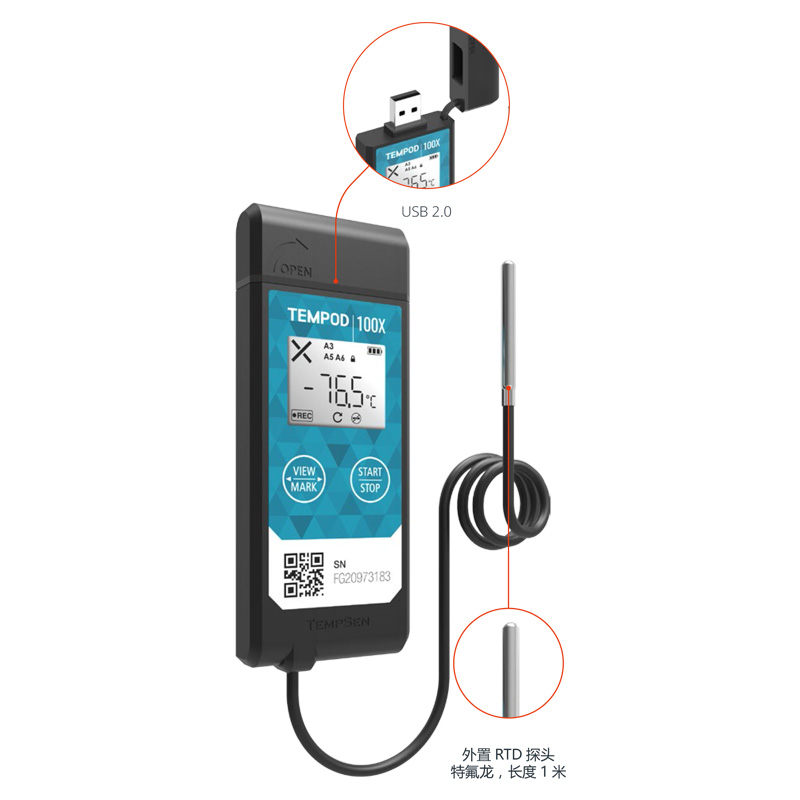 TEMPOD 100X External RTD Probe Ultra Low Temperature USB PDF Temperature Data Logger